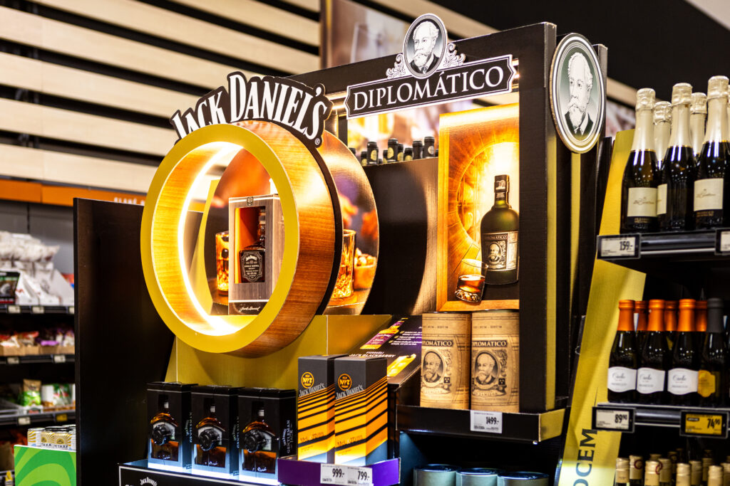 When creating the design, the intention was to highlight the premium character of the products. The design uses iconic elements of both brands—the contrasting black-and-gold color scheme of Jack Daniel’s and the distinctive visual identity of Diplomático. Dominant graphics, premium lighting elements, and a thoughtfully arranged product layout ensured high visibility and easy customer orientation. Shoppers certainly noticed the displays in Albert hypermarkets. The new hotpoints were produced in a total run of fifty units.